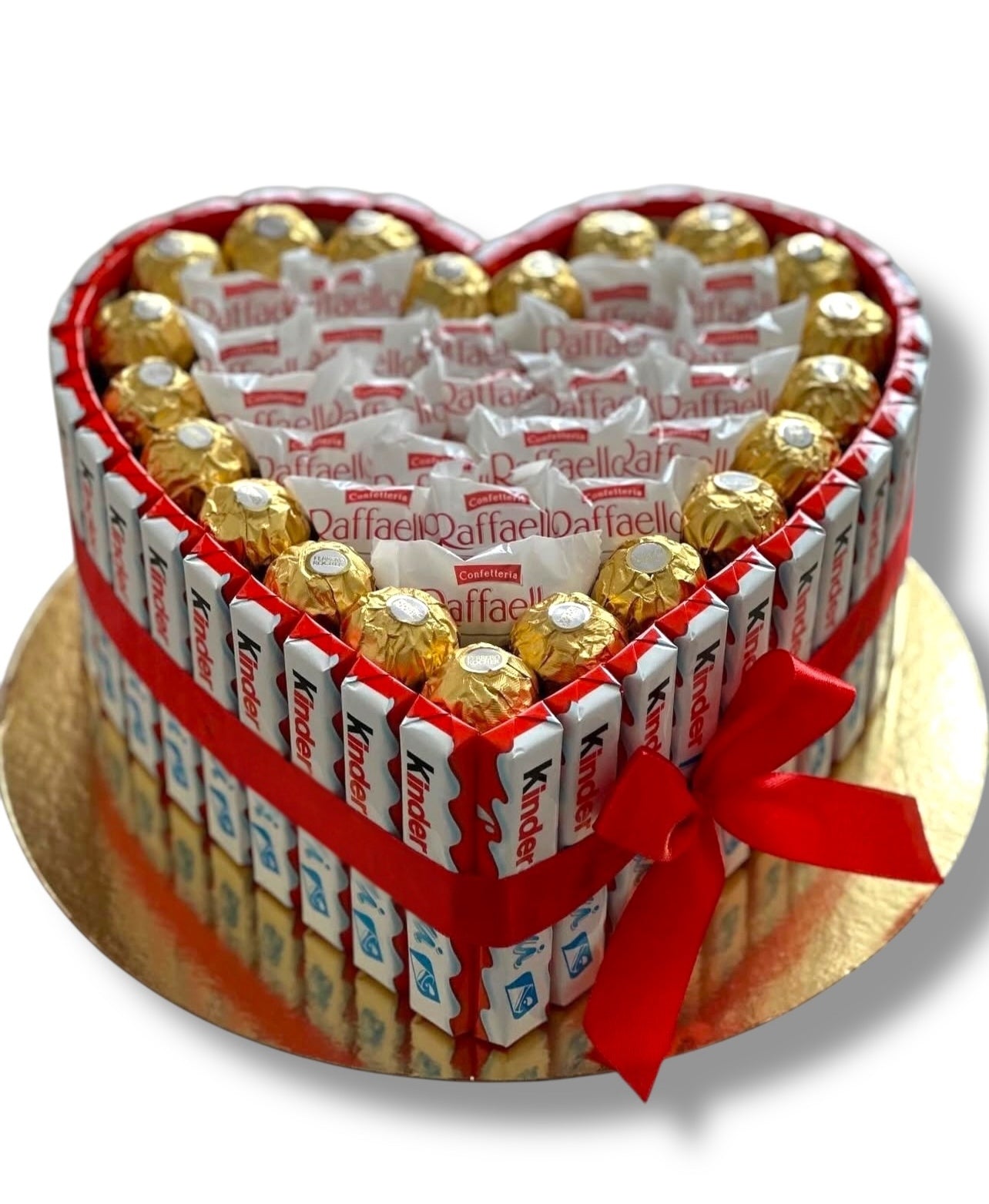 Handgefertigt und liebevoll verpackt, sind unsere personalisierten Herz-Riegel-Torten ein wahres Kunstwerk.